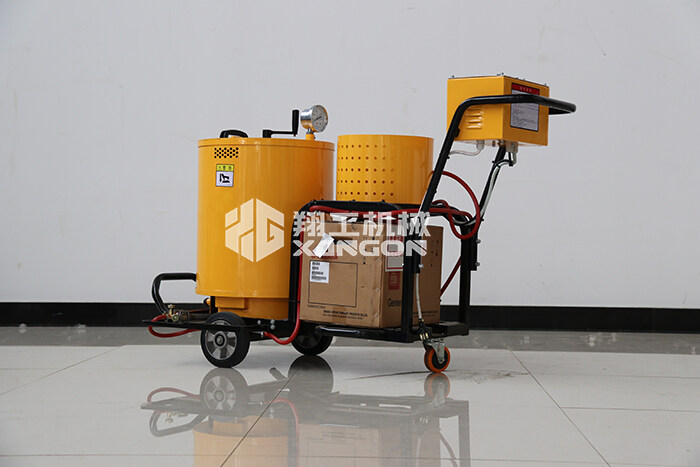 翔工60L手扶瀝青灌縫機采用液化氣加熱系統(tǒng),導(dǎo)熱油循環(huán),使瀝青或灌縫膠快速融化,通過瀝青泵的壓力由出料口出料而達(dá)到裂縫處理的效果。通過壓力注射式灌縫,使材料和縫壁緊密結(jié)合,轉(zhuǎn)向靈活的萬向輪追蹤裂縫,使灌縫效果美觀。由于灌縫材料使用瀝青或灌縫膠,在溫度較低時容易凝固,灌縫機配有發(fā)電機組提供整機動力,灌縫機在出料管部位采用恒溫控制系統(tǒng),避免材料燒焦老化,保證出料的順暢。