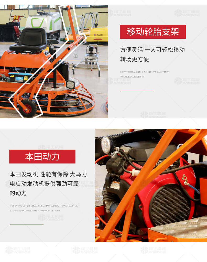 座駕式混凝土抹光機(jī)用于混凝土地面的提漿、壓實(shí)、抹平、抹光,相對(duì)于手扶式抹光機(jī),效率高。