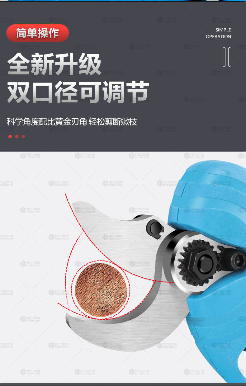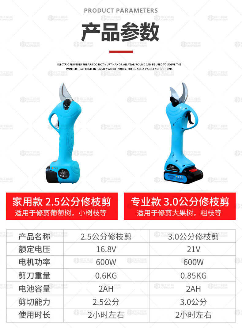 電動(dòng)修枝剪的使用大大提高了植物的修剪效率,降低了修剪工的工作強(qiáng)度,大受人們的喜愛(ài)。滿足了當(dāng)今社會(huì)簡(jiǎn)單輕巧的工作方式,一把小小的電動(dòng)修枝剪不傷手,一年四季均可以使用,解決寒冬酷暑高強(qiáng)度工作的傷害,電動(dòng)修枝剪有多種選擇,這是一款無(wú)線的電動(dòng)修枝剪,使用更加方便。