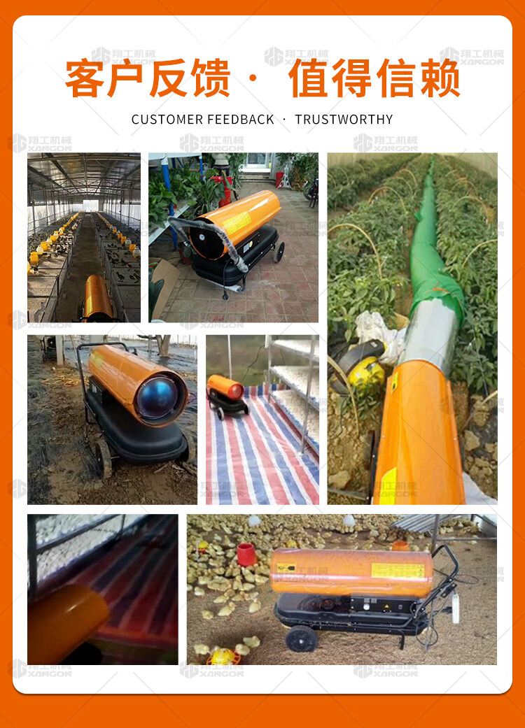 燃油暖風(fēng)機(jī)可對禽畜取暖,育雛取暖,花卉養(yǎng)殖,大棚蔬菜瓜 果,商場,車間,展會進(jìn)行取暖。