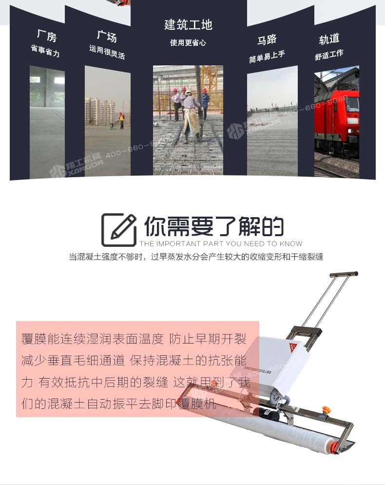 混凝土自動(dòng)振平去腳印覆膜機(jī)主要是用于混凝土澆筑的工作中,此款設(shè)備澆筑后會(huì)進(jìn)行覆膜養(yǎng)護(hù),防止水分蒸發(fā)過快造成的脫水,混凝土自動(dòng)振平去腳印覆膜機(jī)助力推動(dòng)覆蓋薄膜養(yǎng)護(hù)普及進(jìn)程,保證混凝土施工效果。