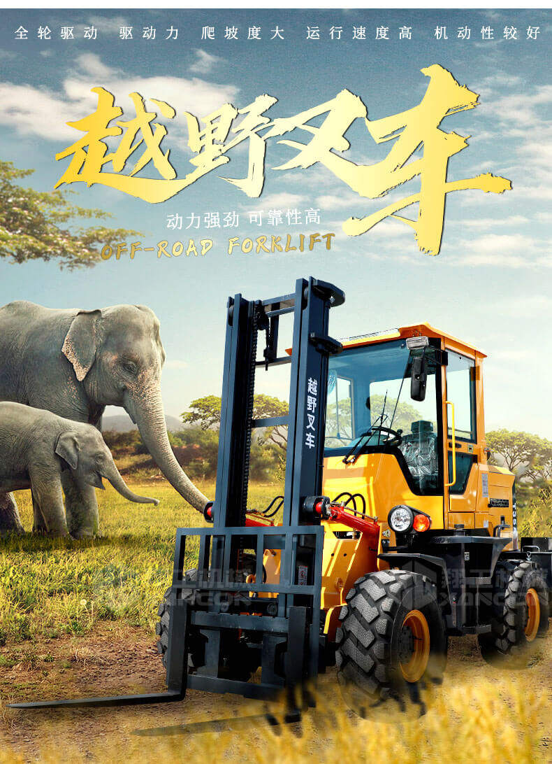 1.普通叉車是兩輪驅(qū)動的,而越野叉車是四輪驅(qū)動的。